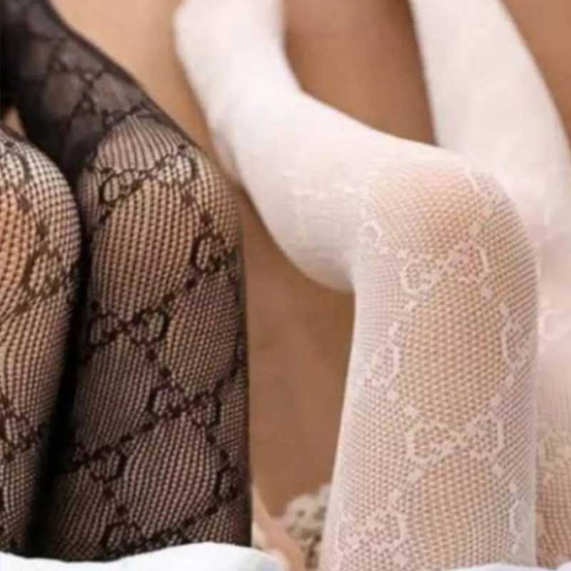 جوراب شلواری توری طرح گوچی در دو رنگ سفید و مشکی سایز فری باکشسانی زیاد و کیفیت عالی
